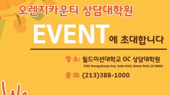 월드미션대학교는 그 동안 음악학과가 배출한 훌륭한 음악 사역자들과 함께 오렌지카운티 지역 주민들을 위한 가을음악회를 연다. 클래식 성악과 합창 그리고 컨템포러리 뮤직을 비롯해 연주까지 다양한 장르로 꾸며질 예정이며, 가을 음악회에 참석하는 방문객 중에 추첨을 통하여 하와이 여행권 및 각종 선물을 제공한다.